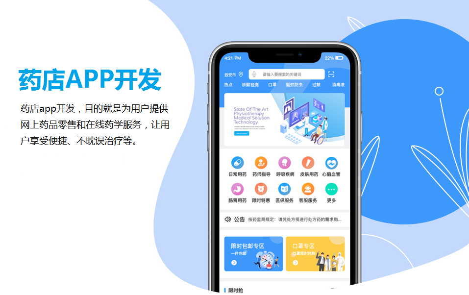 現在線下的實體藥店發展快速,但是市場競爭壓力也大,如果藥店開發APP,搭建專屬的APP,打通線上場景,對接實體門店。通過開發藥店APP,將產品推廣、產品銷售、智能化服務預約、信息化門店管理、會員管理都置于其中,真正實現O2O模式發展。